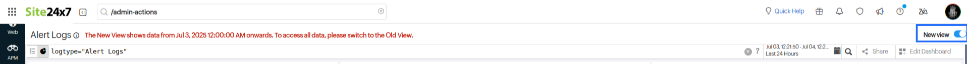 • Alert logs in the new view are retained for 365 days.