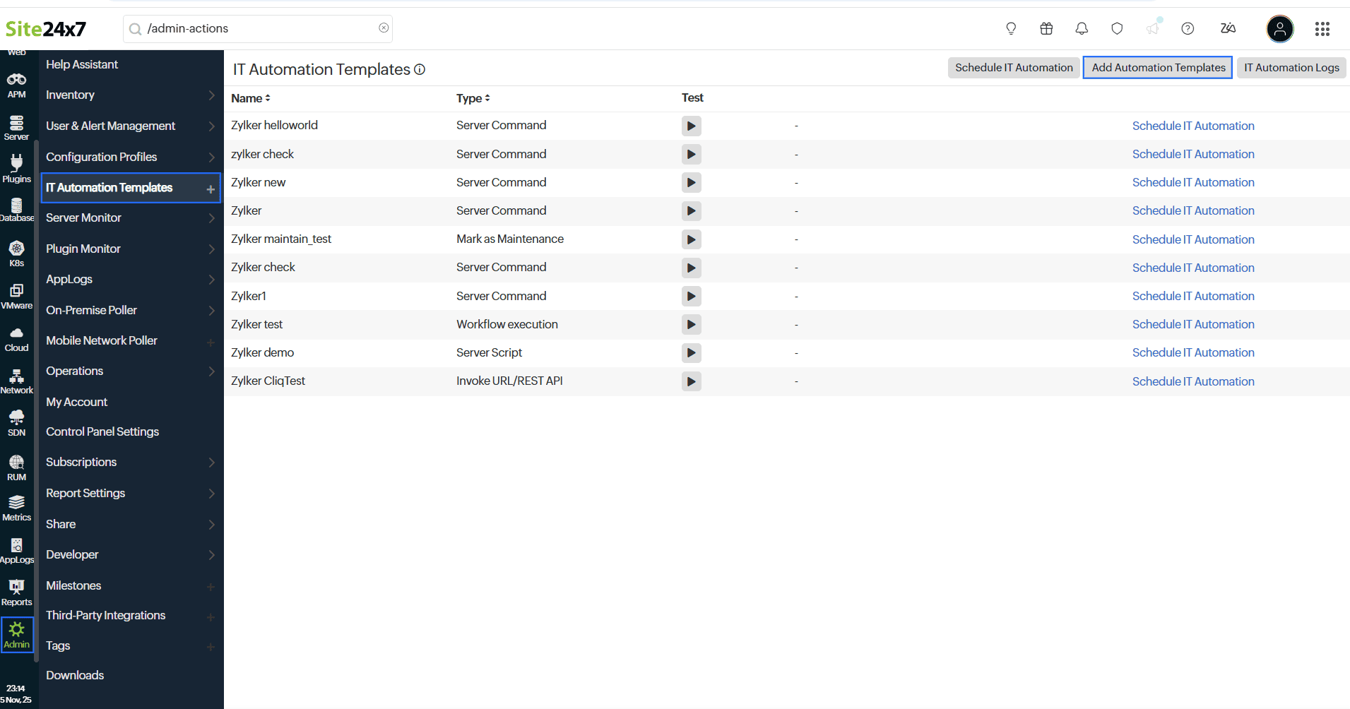 1. From the left menu, navigate to Admin > IT Automation Templates.