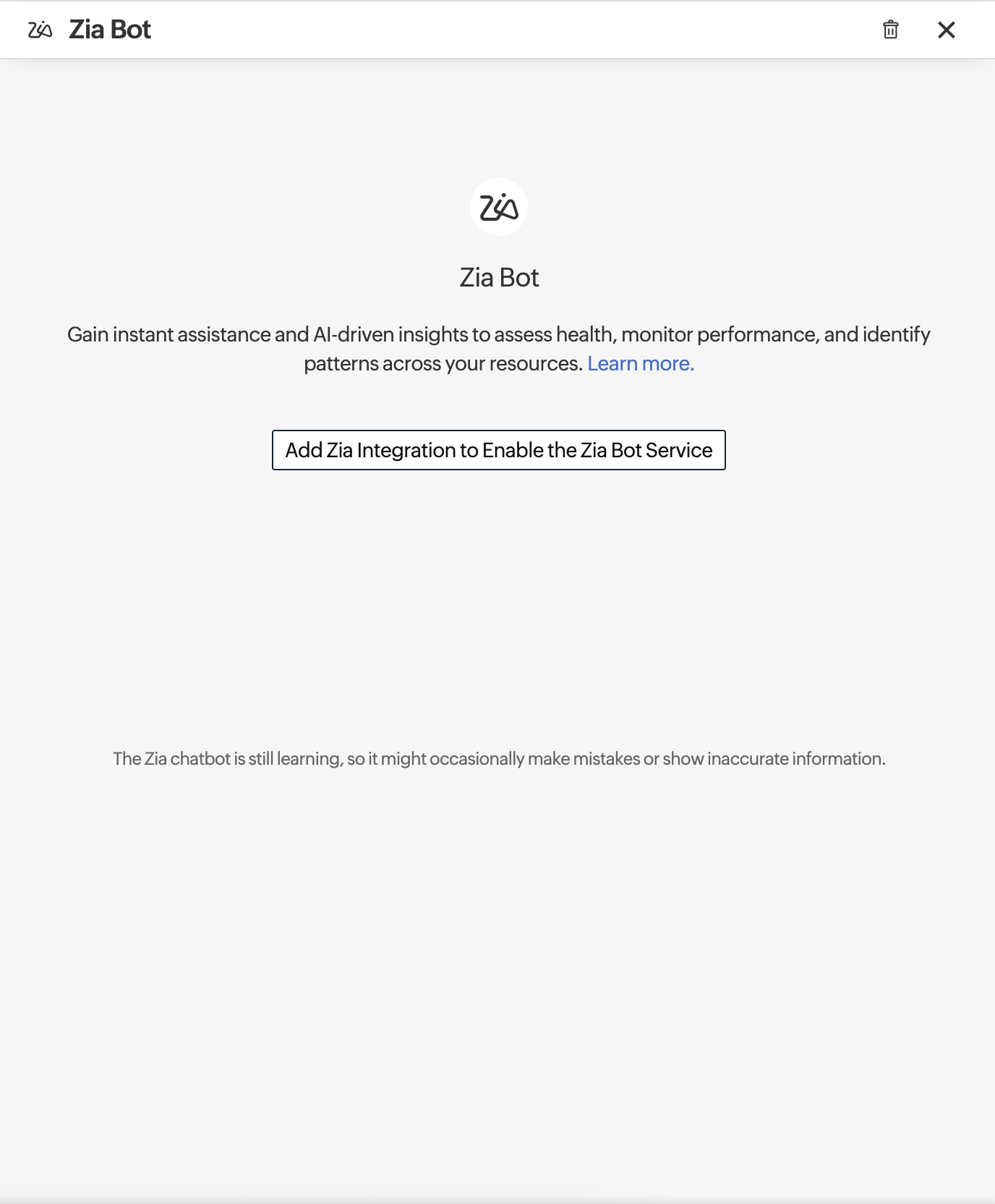 3. Click Add Zia Integration to Enable Zia Bot Service to enable the Zia Bot service.