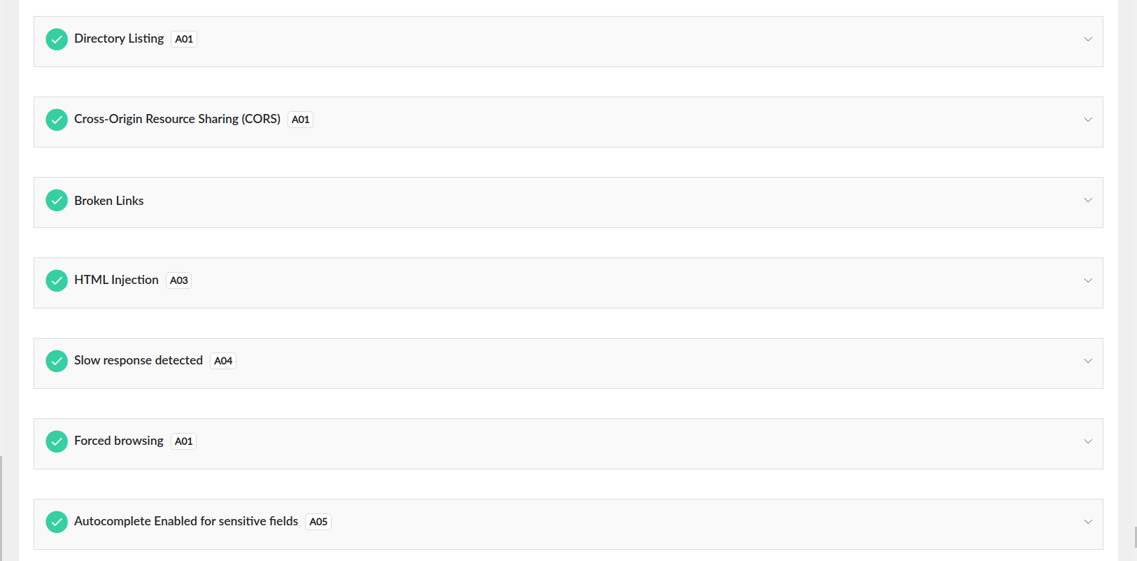 6. Some assertions are tagged with identifiers such as A01, A02, A03, etc., which indicate the OWASP category they align with.